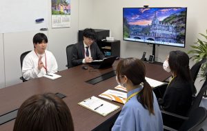 当日は、会社概要や事業内容の紹介に加え、実際に業務を行っているオフィスの見学、当社の若手社員との座談会を行いました。